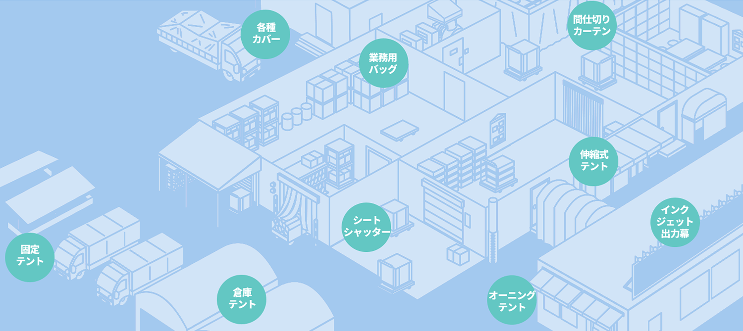 テントやシート・カバー等、あらゆるシート関連製品の製造を致します。長年の経験と確かな技術で、お客様のあらゆるご要望にも対応可能です!