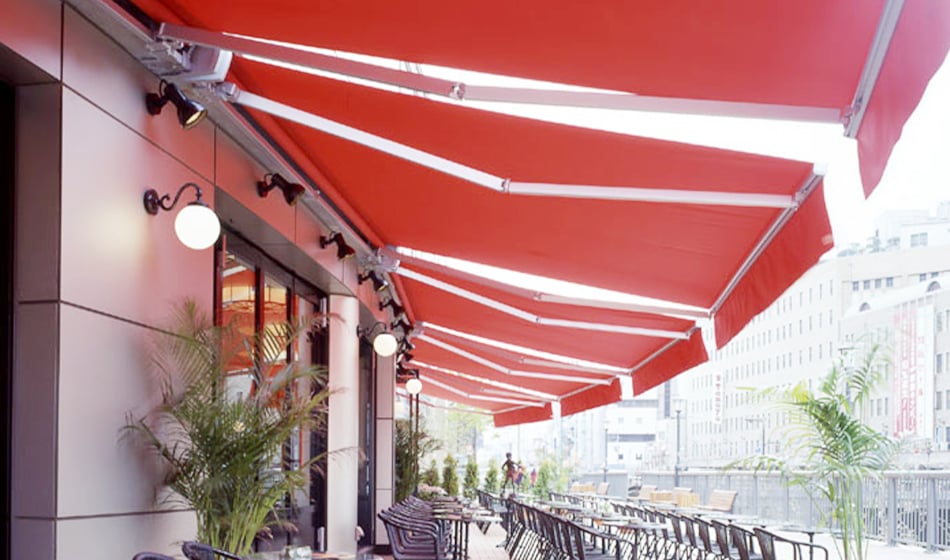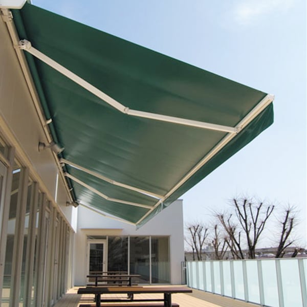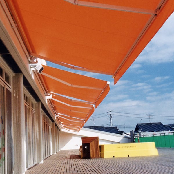 「日よけ」「雨よけ」のテントです。張り出して使用して、巻き取って 収納します。