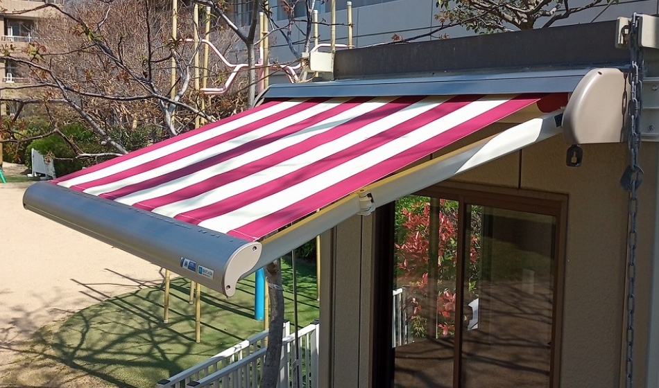 間口1375ミリ×出1000タイプの小さなオーニングです。 -