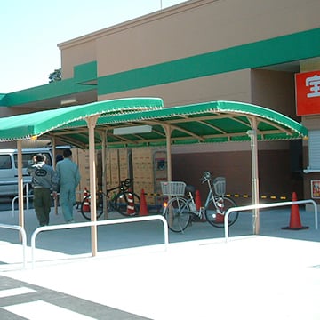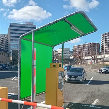 精算機や発券機の上にテントで屋根を設置したものです。テント材:一般テント用(防炎)