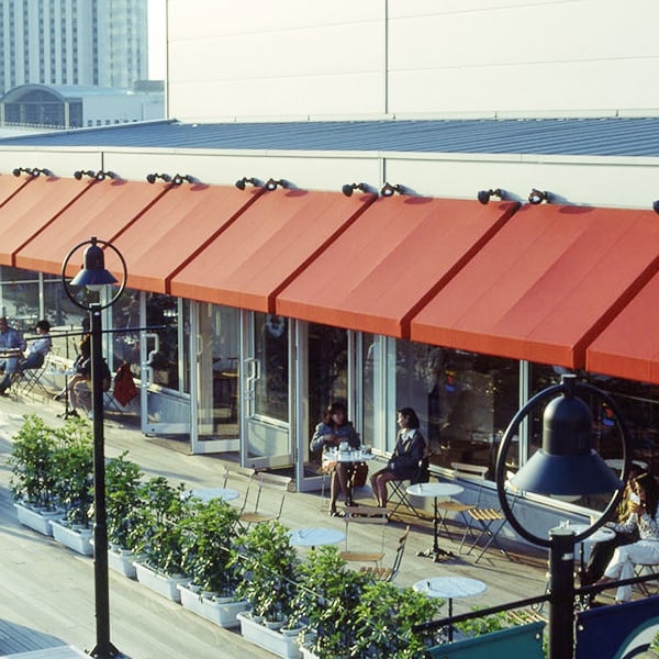 「固定テント」はスチールパイプ等の枠に縫製加工したテントを張り込みした常時設置型のテントのことをいいます。