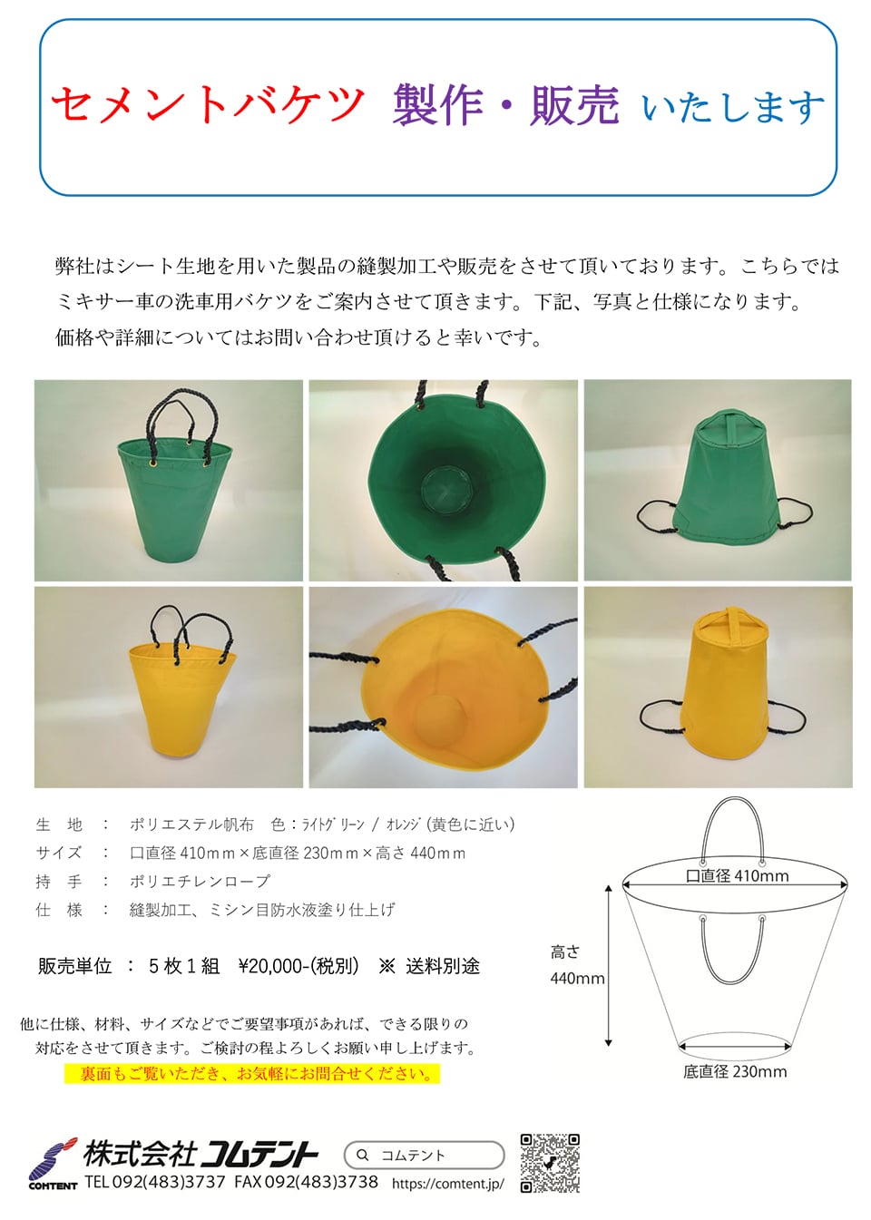 コンクリートミキサー車に常備携帯して活躍する洗車バケツです。