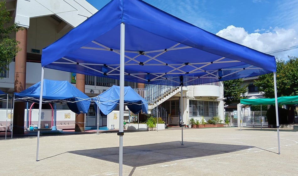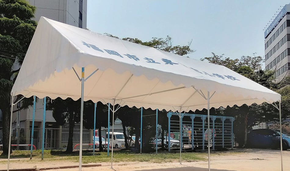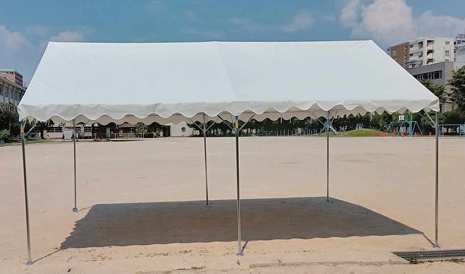 学校行事、町内会行事、運動会等用途は様々。組み立てが簡単で、一般の方にも使いやすく、もっともポピュラーな集会用テントです。機能、強度、デザインにもすぐれ、価格も手頃なので、運動会や文化祭、見本市などに大人気です。
