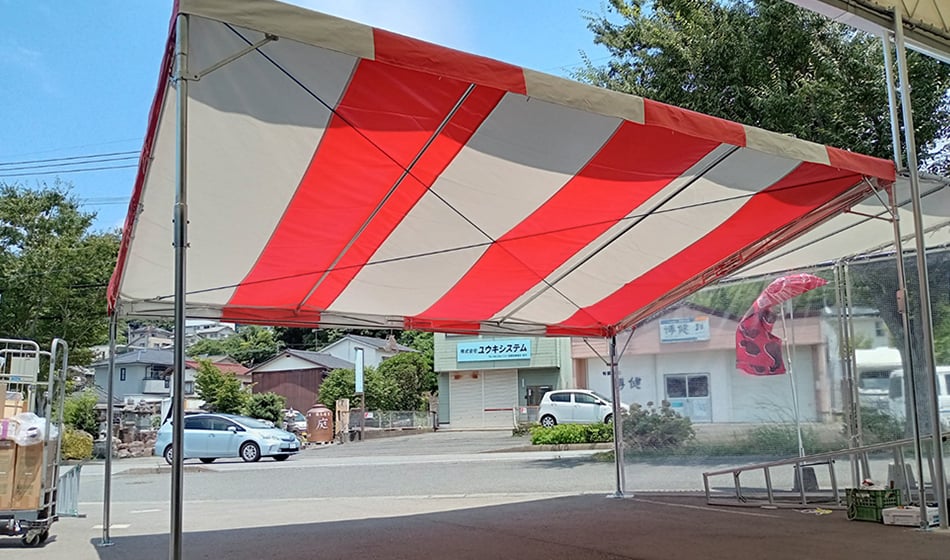中間に柱がなく日除け雨よけや休憩場所だけでなく受付やステージにもお使い頂けます。